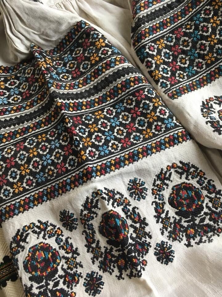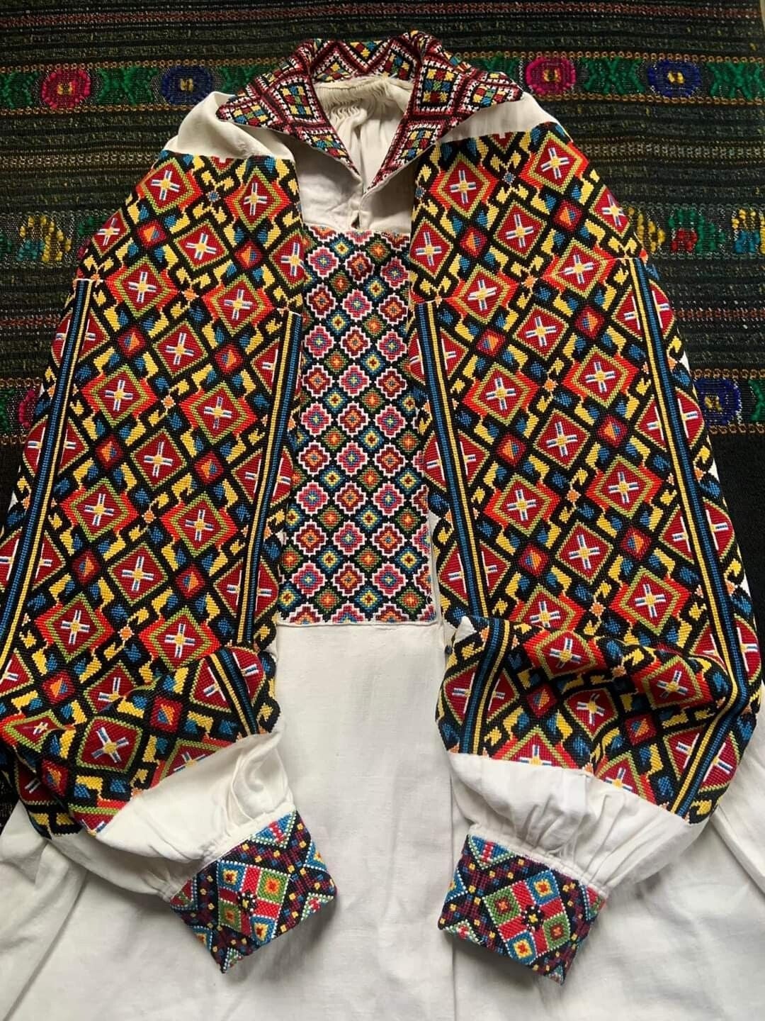 The lozenge is an archaic shape (a form, figure, or design that is characteristic of a very old or primitive period, specifically the early, formative stages of a culture or artistic tradition) tied to human fertility and land. The concept of male and female, are instrumental, when deciphering the meaning of this symbol. In the ancient pre-modern Ukrainian period, it was believed that women held the three corners of the lozenge (the three corners of the home), while the man held the fourth, completing the family. A lozenge with a dot in the middle symbolises a sown field, which was extremely important for our ancestors as it guaranteed a good harvest. The lozenge is sometimes referred to as the trypillian square – a kind of harrow which is a farm implement used after plowing to break up soil clumps, smoothing the surface of the soil and preparing it for sowing. In addition to simple lozenges, we often see rhombuses with hooks (tiny horns) in Ukrainian embroidery. This design is called “zhaba” (toad) and symbolizes fertility. In ancient beliefs, this little creature was linked to heavenly moisture that gives life. Lozenge-shaped patterns were embroidered on wedding towels and bridal gowns. Pregnant woman wore shirts covered with diamond patterns until childbirth as this symbol served as a powerful talisman of good fortune and fertility.